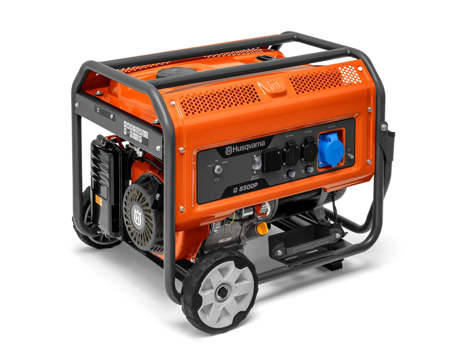 Husqvarna G8500 P is a big, powerful and efficient generator designed for powering work sites and homes in environments with limited electricity supply. Delivers 7.5kW (50Hz) rated output supplied by a reliable, fuel efficient and easy-to-start petrol engine with 27L fuel tank for continuous operation